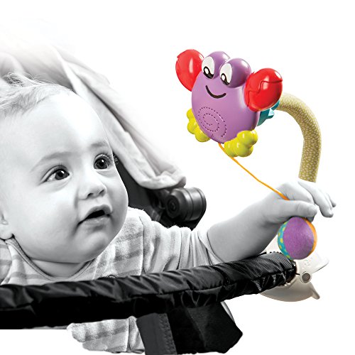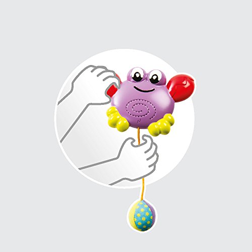 - Features include bell ball and crab sound when the ball is pulled down. Creates fun sounds to entertain and delight baby. Immediate feedback based on baby's actions for cause and effect learning.