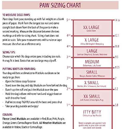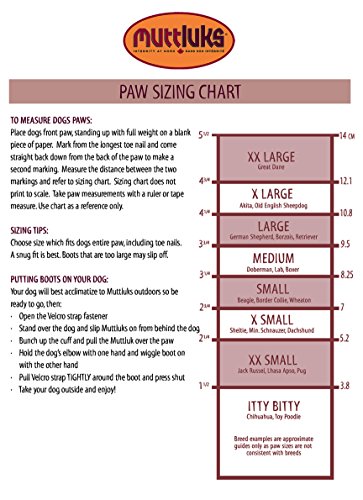 Studio : A.C. Kerman - Pet Products Publisher : A.C. Kerman - Pet Products Binding : Misc. Product Description Proudly designed and made in Canada since 1994, Mutt Luks are not just fancy footwear for canines. They provide superior performance and "Pawsitive Relief" for your canine companion. All Weather Mutt Luks provide protection for hot or cold climate conditions. Protects paws from hot pavement, hot sand, burrs, ice, snow or salt. 0