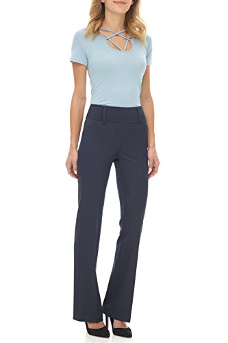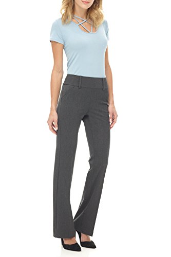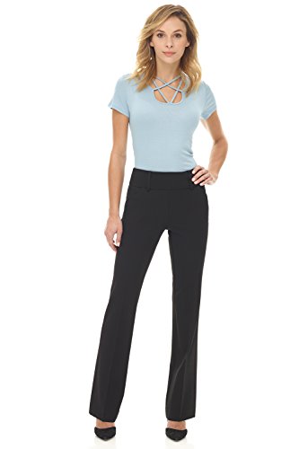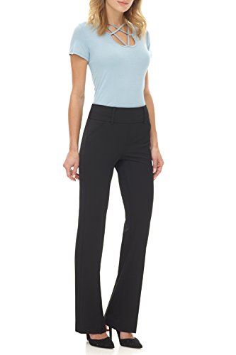 Our mid-rise pant fits snug through the thigh with a classic bootcut leg opening. Wear it with heels for a long and lean look that visually slims your look. Designed with real, functional pockets front and back, and added belt loops for the ultimate in utility meets versatility. You can look chic, polished and professional, and still have somewhere to put everything including your phone. This pull-on style, with our classic wide contour Rekucci waistband is built with the ease and stylish comfort of our Miraform¨ fabric. This fabric is one step above.Feature