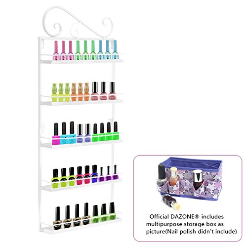 Dazone DIY Mounted 5 Shelf Nail Polish Wall Rack Organizer Holds 50 Bottles Nail Polish or Essential Oils(White)