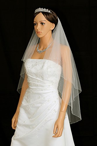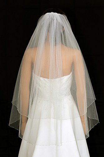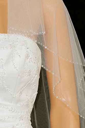 (SAMKY)/Accessories/Scarves/DIRECT FROM USA/2T 2 Tier AB Crystal Beaded Edge Bridal Wedding Veil - ivory Fingertip Length 36" V279