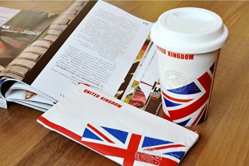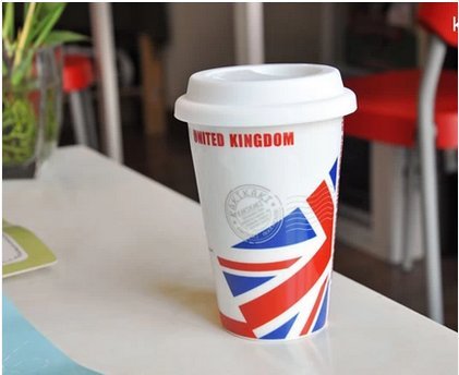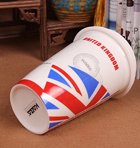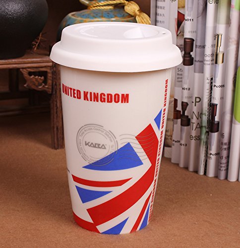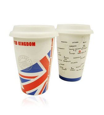 H-Ceramic National Flags Collection Ceramic Double Wall 12 Oz Travel Mug With 2 Lids-UK Flag And Map