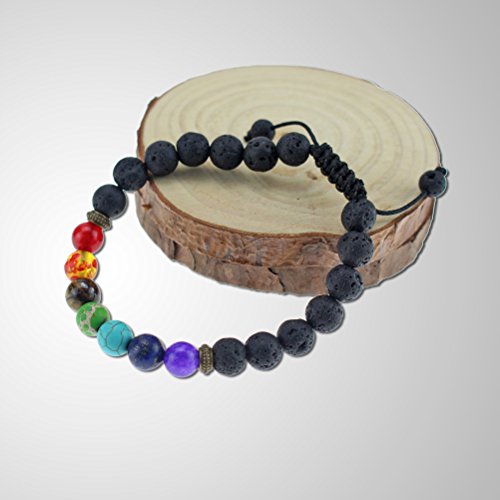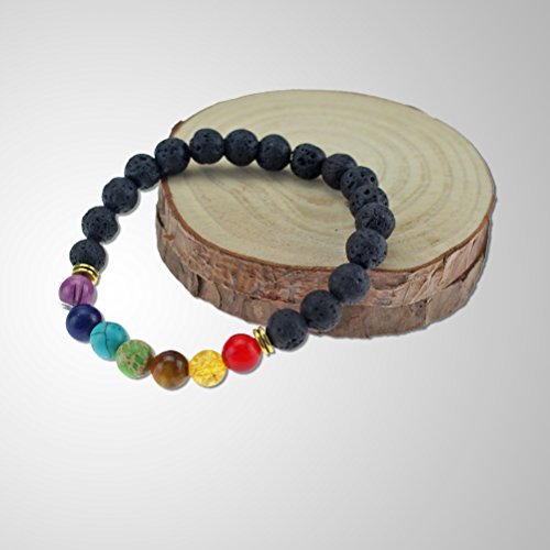 - - 7 Chakras Bracelet: Root Chakra, Sacral Chakra, Solar Chakra, Heart Chakra, Throat Chakra, Third Eye Chakra, Crown Chakr, each chakra are strung with 8mm volcano lava rock stone beads.