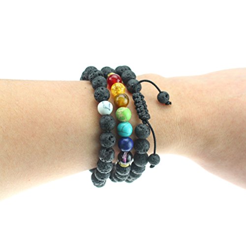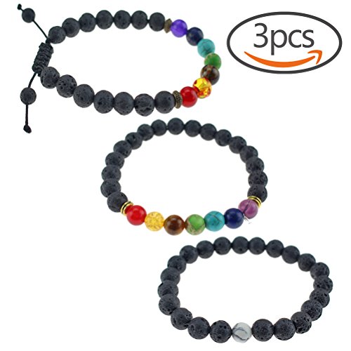 CREATRILL Bundle 3 pcs Calm Lava Stone Diffuser Bracelet - 7 Chakra Healing Bracelet with natural Stones, Volcanic Lava Rock, Mala Meditation, grounding,...
