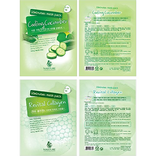 -. Title : NAISTURE Collagen Facial Mask Sheet Pack - Essence Face Masks - 15 Minute Application For Hydration - Made in Korea