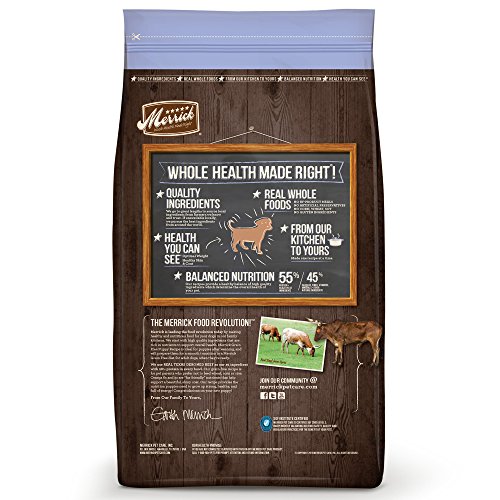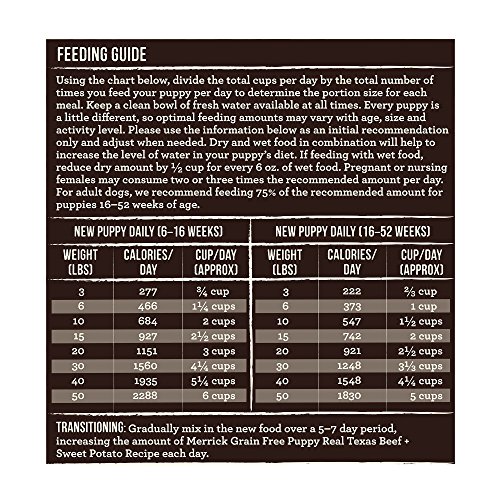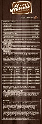 -. Binding : Misc. -. Brand : Merrick -. EAN : 0022808354581 -. Feature : HIGH PROTEIN: #1 ingredient is real deboned beef / GRAIN-FREE NUTRITION: Many pet parents choose grain-free for their pets to avoid grain sensitivities; improve gastrointestinal health; for easier digestibility; healthy skin and coat; and to foster increased energy. Merrick Grain-Free puppy food recipes contain no corn, wheat, soy or gluten ingredients. / PUPPY FORMULA: Merrick Grain Free puppy recipes contain DHA for healthy brain development and are formulated to meet the nutritional and development requirements of all puppies, including large and small breeds. / FROM OUR KITCHENS TO YOURS: Merrick Grain-Free puppy food is cooked in the USA in Merrick's own organically certified kitchens. Merrick Grain-Free recipes never include ingredients from China. -. Label : Merrick Pet Care -. Manufacturer : Merrick Pet Care -. Model : 38458 -. MPN : 38458 -. NumberOfItems : 1 -. PackageQuantity : 1 -. PartNumber : 38458 -. ProductGroup : Pet Products -. ProductTypeName : PET_SUPPLIES -. Publisher : Merrick Pet Care -. Size : 12 lb -. Studio : Merrick Pet Care -. Title : Merrick Grain Free Beef & Sweet Potato Dry Dog Food, 12 lbs. -. UPC : 022808354581