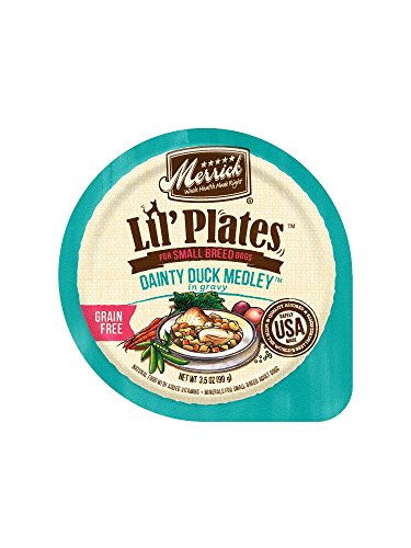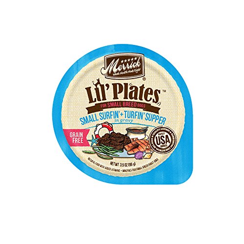 Merrick Lil' Plates Grain Free Dog Food is specially formulated to meet the particular dietary needs of small breed dogs. Merrick Lil’ Plates Wet Dog Food recipes start with real meat, fish or poultry as the first ingredient for a high-protein meal, and include farm-fresh fruits and vegetables like apples, sweet potatoes, blueberries, peas and more.
