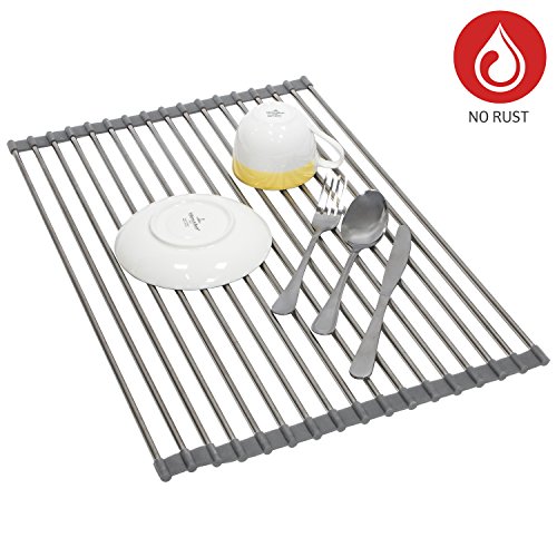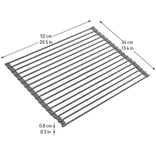 -. Binding : Kitchen -. Brand : Tatkraft -. Color : Silver -. EAN : 4742943020719 -. Feature : Over sink dish drainer is a perfect space saving solution for the kitchen / Sturdy design made of stainless steel allows to hold a large amount of tableware. The silicone surface stops drying rack from sliding / Foldable design: easy to roll up and store in the cabinet, under the sink or behind the faucet / Can be used as drying rack, cooling mat, backed food trivet, colander for wet fruits and vegetables / No rust. Heat resistant up to 200°C / 400 F. Product size: 20.5x13.4x0.3" (52x34x0.8 cm) -. Label : Tatkraft -. Manufacturer : Tatkraft -. MPN : 20719 -. PartNumber : 20719 -. ProductGroup : Home -. ProductTypeName : HOME -. Publisher : Tatkraft -. Studio : Tatkraft -. Title : Tatkraft Spin Over Sink Roll Up Dish Drainer Stainless steel L20.5xH13.4xD0.3