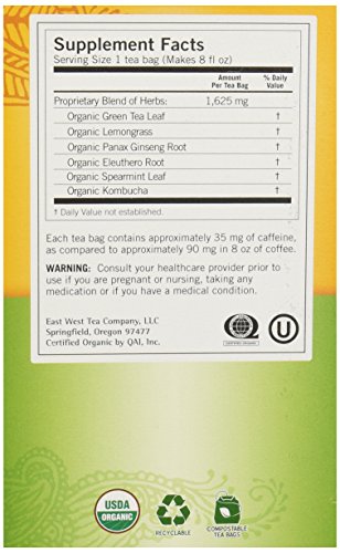 -. Feature : 7% Organic / Certified organic ingredients for energy and well-being / Boxes wrapped with cellophane; teabags packed in heat-sealed envelopes for freshness / Ingredients carefully handled in organically certified facility in Eugene, Oregon