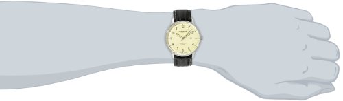 -. Feature : Clean, Cream, dial with easy-to-read Arabic numeral hour markers / Silver-tone, stainless steel, case / Black, genuine leather, strap with stitching / Swiss Quartz movement / Water-resistant to 30 M (99 feet) / Water resistant to 99 feet (30 M): withstands rain and splashes of water, but not showering or submersion