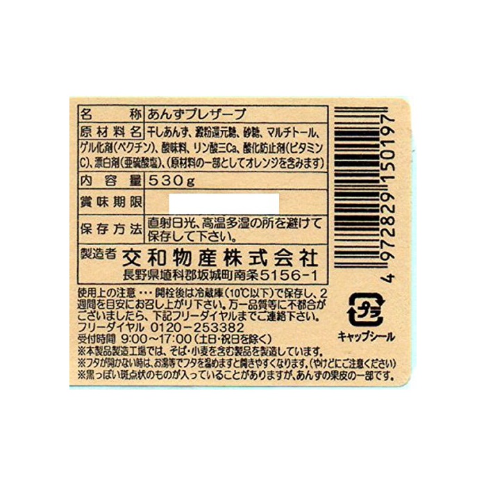 원본상품명: 交和物産 あんずプレサ?ブ 530g