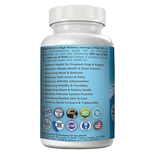 Thats why we have developed the purest omega-3 fish oil for dogs - The complete dog health care supplement, unlike a a slew of inferior products out there ScruffyPet dog fish oil brings the most potent levels of EPA and DHA in a chewable softgel - NO SMELL, NO FUSS!