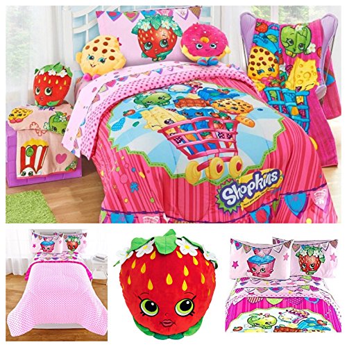 -. Title : Shopkins Toys 6 Piece Bedding Comforter Set with Strawberry Kiss Pillow - Full