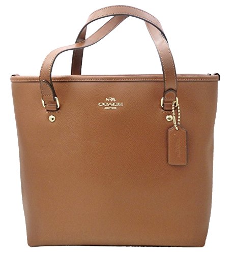 COACH CROSSGRAIN ZIP TOP TOTE - SADDLE