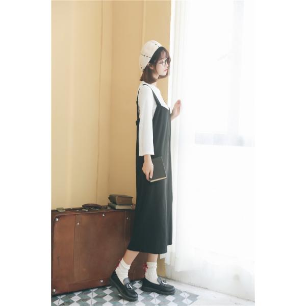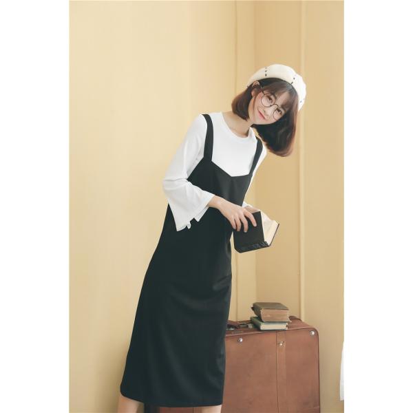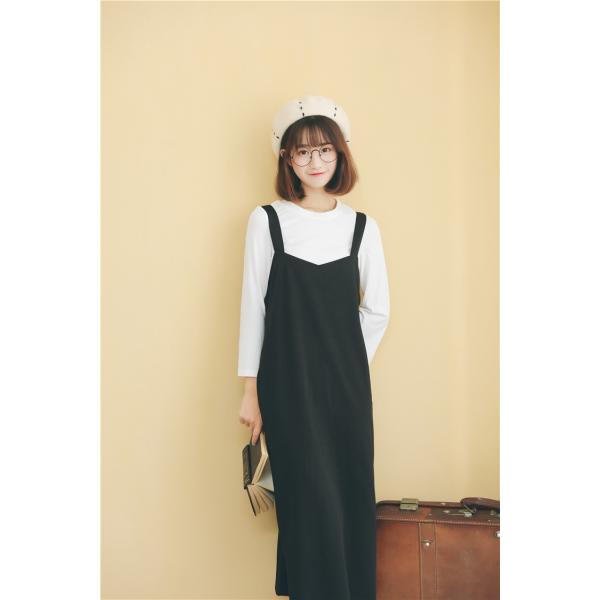 シンプルな無地ブラックのノースリーブワンピースです。