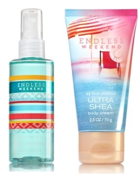 -. Binding : Misc. -. Brand : Bath & Body Works -. EAN : 0745577640975 -. Feature : Endless weekend travel size set ultra shea body cream 2.5 Oz and Body Mist 3 Oz / Endless Weekend: blend of raspberry lychee sorbet, sun-kissed magnolia and vanilla sandalwood / Body Cream 2.5 Oz: with soothing aloe butter, pampering cocoa butter, nourishing coconut oil and more shea / Body Mist 3 Oz: Lavishly splash or lightly spritz your favorite fragrance in a mist you can't resist. Our conditioning aloe mist nourishes skin for the lightest, most refreshing way to fragrance. -. IsAdultProduct : 0 -. Label : Bath and Body Works -. Manufacturer : Bath and Body Works -. MPN : 0745577640975 -. PartNumber : 0745577640975 -. ProductGroup : Beauty -. ProductTypeName : BEAUTY -. Publisher : Bath and Body Works -. Studio : Bath and Body Works -. Title : Bath and Body Works Endless Weekend Travel Size Ultra Shea Body Cream 2.5 Oz and Body Mist 3 Oz -. UPC : 745577640975