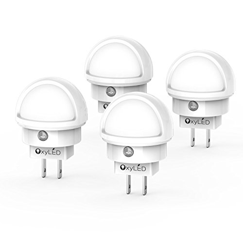 OxyLED N02 LED Night Light, Plug-in Wall Light with Dusk to Dawn Sensor, 0.26W White Light with Bedroom Bathroom Kitchen Hallway Kids Baby Nursery 360 Degree Rotating Head (4 pack)