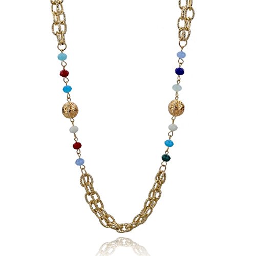 -. Title : Bling Beauty Jewellery Ping Gold Plated Chain Necklace Blue Crystal Bead Necklace For Women Long Necklace Sweater Link Sne