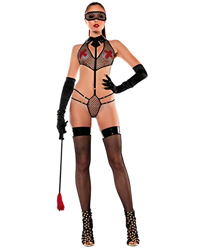-. Title : Roleplay Collared Mesh PlaySuit w/Mask Black S/M