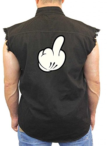 (Juiceclouds)/Men/Outerwear/DIRECT FROM USA/Juiceclouds | Sleeveless Denim Ves t Cartoon Middle Finger M-5XL