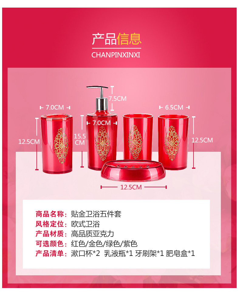卫浴五件套欧式贴金情侣刷牙杯漱口杯牙具套装结婚卫生间洗漱用品