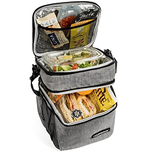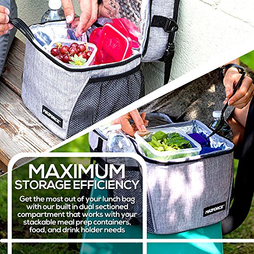 ★ UNLIKE OTHER LUNCH BOXES OR BAGS that boast how they are ROOMY or SPACIOUS our new premium quality design was truly built with MAXIMUM LUNCH STORAGE EFFICIENCY in mind; Get the most out of your lunch bag with our built in leakproof two dual sectioned compartments that works with your stackable meal prep containers food and drink holder or bottle needs