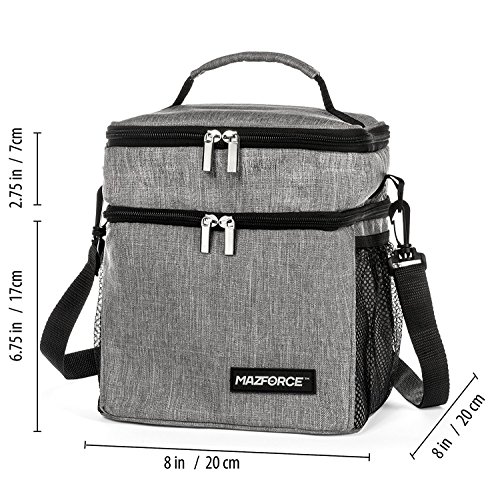 ★ DIMENSIONS AND OUR MANUFACTURE'S PROMISE AND NO RISK GUARANTEE; The full bag dimensions are 8*9.5*8in / 20*24*20cm; Bottom Compartment 8*6.75*8in / 20*17*20cm; Top Compartment 8*2.75*8in / 20*7*20cm; At Mazforce we always take great pride in the craft design and durability of our lunch boxes and if any customer is not 100% satisfied with their purchase we will gladly offer a hassle-free refund or exchange