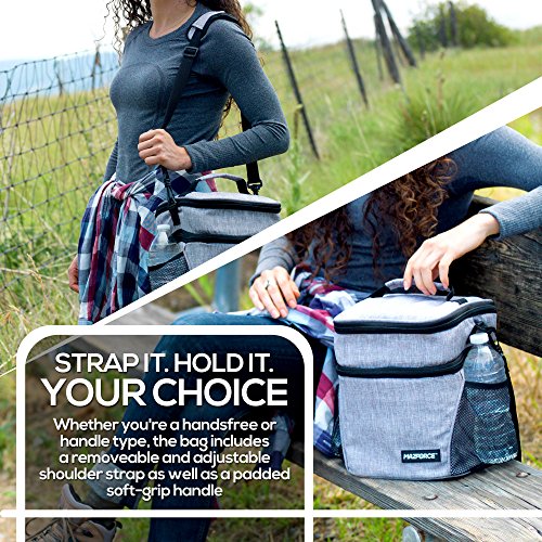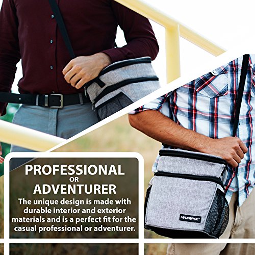 ★ LUNCH ORGANIZER AND HANDS-FREE; The max efficient dual zone storage compartment keeps your food and utensils organized and is equipped with 3 convenient expandable mesh pockets inside and outside of the bag for bottles snacks cookies napkins condiments and also comes with a black adjustable and detachable shoulder strap which transforms this hand held tote bag into a totally portable hands-free bag