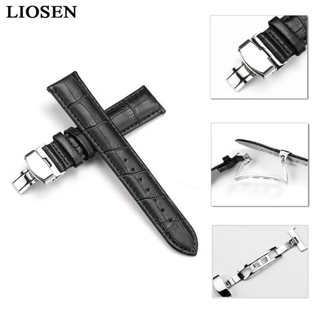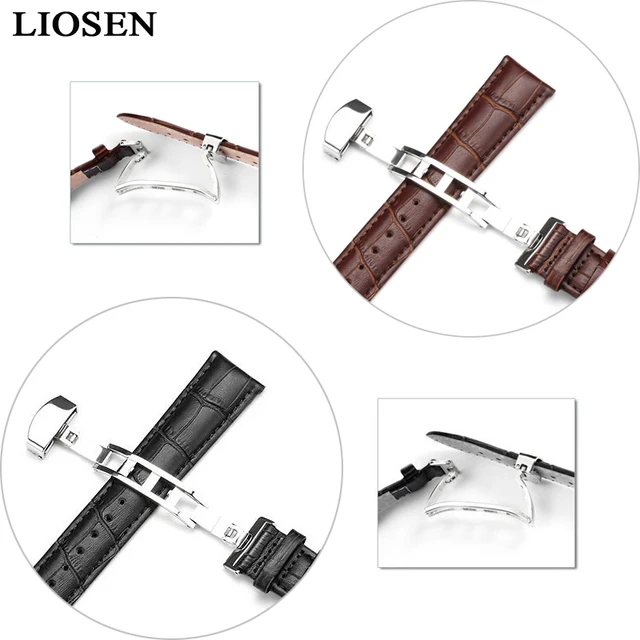 | [해외]Liosen 정품 가죽 시계 스트랩 butterfly 버클 블랙 브라운 줄 16 18 19 20 21 22 24 미리메터 |