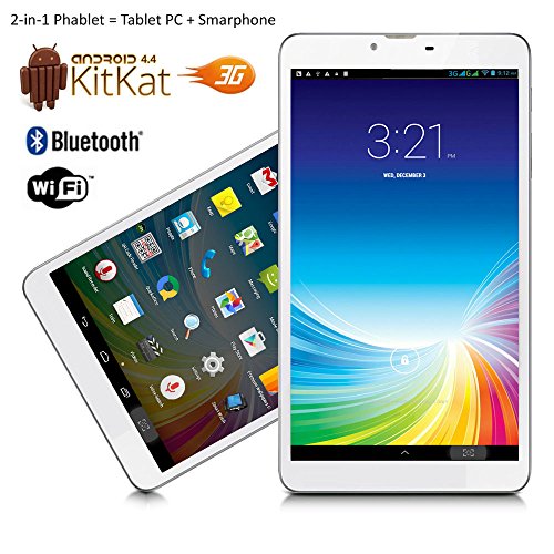-. Feature : 7.0 inches Android 4.4 Kitkat 3G Phablet 2-in-1 Tablet PC + GSM Wireless SmartPhone (Call as mobile phone) with Google Play Store and HD Capacitive Multi-Touch Screen / GSM Mobile Cell Phone - Support 3G GSM QuadBand: GSM 850/900/1800/1900MHz WCDMA 850/2100MHz|Make and receive calls directly from the tablet itself with the built-in MIC and speaker / Powered by MTK MT8312 DualCore Processor 1.3GHz CPU, 4GB Internal Memory, Latest Android 4.4 Kitkat Operating System, Integrated 802.11 b/g/n, Bluetooth, Dual-Camera and more. / WiFi 802.11 b/g/n Support - Connect to internet for A full Internet experience | Bluetooth enabled - connect to any bluetooth headset handsfree / Support Google Play Store and preinstalled - access to millions of free and paid-for applications available to download straight to your phablet.