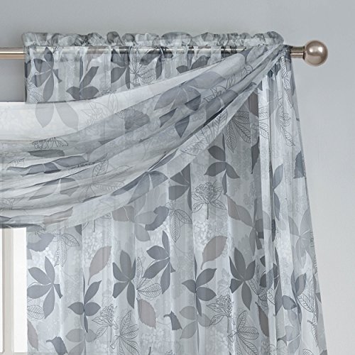 Window Elements Ashville Printed 216 x 54 in. Sheer Curtain Scarf, Grey