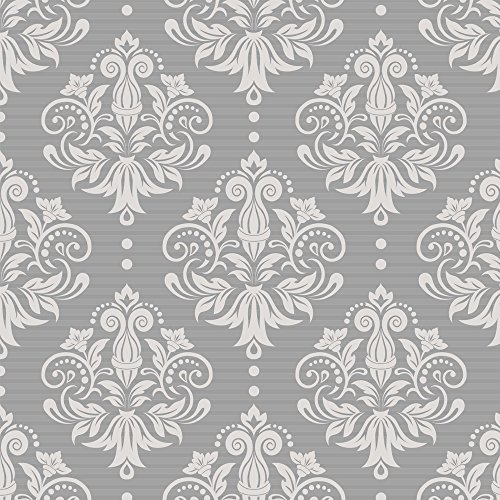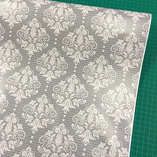 SimpleLife4U Peel & Stick Drawer Liner Removable Contact Paper for Covering Apartment Old Cabinets Shelves, Gray-White Damask, 17.7 Inch By 9.8 Feet