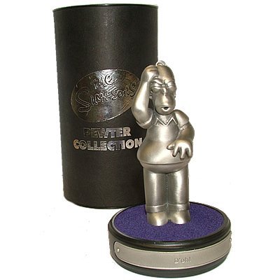 -. Feature : Simpson Pewter Homer Simpson Statue "Approximatley 5 1/2" tall with a 3" wide base / Pewter Homerism figure. Plaque on front reads: "Doh !." / Made in England. Original retail $40. / Packaged in silver embosed black tube.