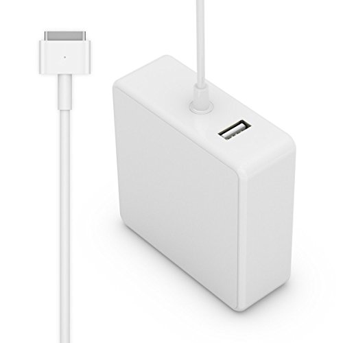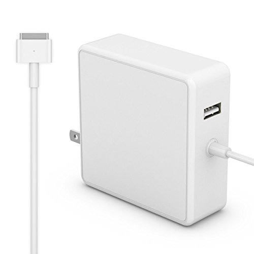 -. Feature : Input: AC 100-240V,1.5A 50-60Hz Output: DC 14.85V-3.05A / Replacement charger AC adapter for Apple MacBook Air 11"/MacBook Air 13" from Mid 2012: MacBook Air (11-inch, Mid 2012) ; MacBook Air (13-inch, Mid 2012) ; MacBook Air (11-inch, Mid 2013) ; MacBook Air (13-inch, Mid 2013) ; MacBook Air (11-inch, Early 2014) ; MacBook Air (13-inch, Early 2014) ; MacBook Air (11-inch, Early 2015) ; MacBook Air (13-inch, Early 2015) / Designed Feature: Replacement charger with an Extra USB Port for other Device ; Led light Status Info: When the connection is secure, an LED located at the head of the DC connector lights up--an amber light lets you know that your notebook is charging, while a green light tells you that you have a full charge. / NOTE: Power adapter with MagSafe 2 style connector ( T-Tip ) for Macbook Air ( For Macbook Air Released after Mid 2012 ) . Please kindly check your Macbook Air model before purchasing. / Warranty: Satisfaction guaranteed and backed by a one-year warranty for replacement