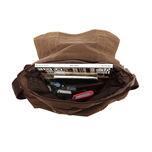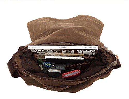 -. Brand : Sechunk -. Department : boys -. Feature : Main material: use of high-quality cotton canvas, bronze metal / Structure: A total of six pockets, one main pocket, outside: two side pockets; interior: a zipper pocket and two open pockets. / Dimensions: 15.75 '' * 4.33 '' * 14.96 '' Capacity: 16.72 L Weight: 1 KG / Features: simple design and retro, you can go to school, travel, shopping when in use; large space, you can put down the 15.6-inch laptops, and other small things, cell phones, pens, sunglasses, clothes, etc. / Sechunk: All of our bags have 1-YEAR WARRANTY. Any problems with your bag, please contact us. We will solve it. -. ProductGroup : Apparel -. ProductTypeName : LAGE -. Size : One Size -. Title : Sechunk Cotton Canvas Leather Messenger Bag Shoulder Bag Crossbody Bag Satchel Bag Book bag Laptop Bag Travel Bag Hiking Bag Duffel Bag