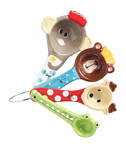 - Includes Tablespoon Elephant, Teaspoon Bear, 1/2 Teaspoon Deer and 1/4 teaspoon Alligator Measuring Spoons