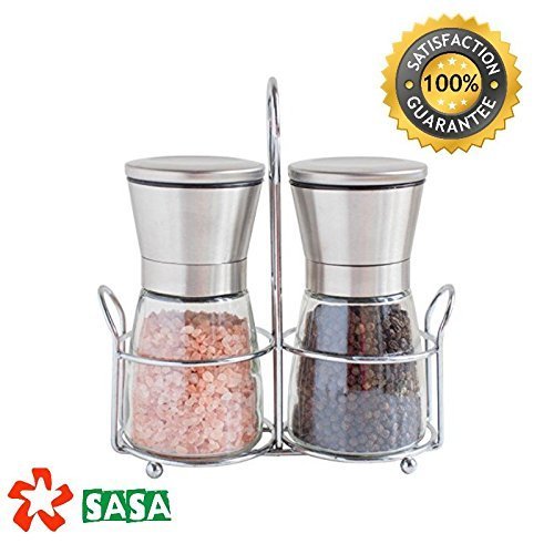 SALE Salt & Pepper Mill set With Matching Stand Grinder Set -Adjustable Ceramic Rotor | Glass Body | Stainless Steel Stand | Salt Mill and Pepper Mill | Kitchen Tool-100%