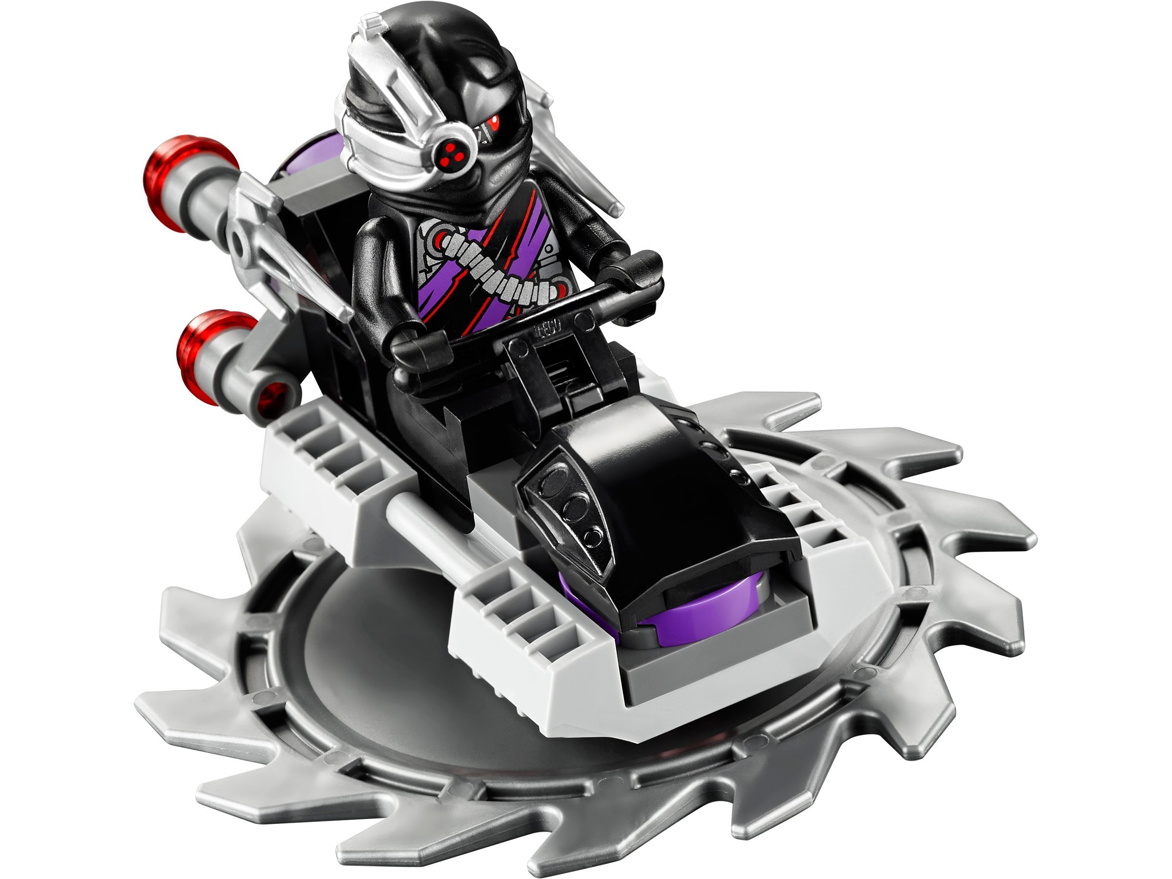 Open the hood and activate the interceptor bike, remove the techno blade from the vehicle and take out the techno blade! Kai, with two mini figures of Nindroid and weapons.