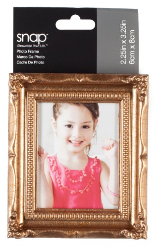 Ornate gold mini tabletop frame lends a mini note of sophistication to any room. Whimsical detailing is perfect for displaying any 2-inch by 3-inch photo.
