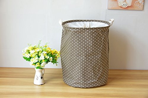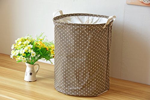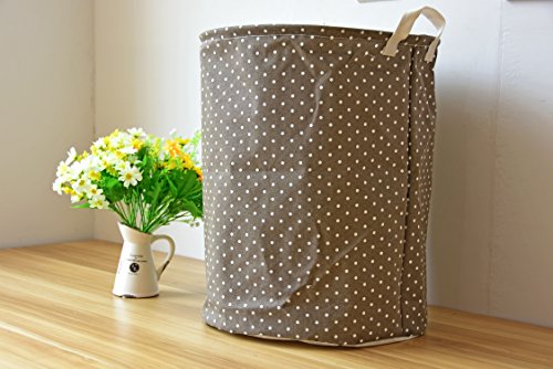 -. Feature : Cotton jote fabric - Cotton linen,Waterproof PE coating / 35cm wide diameter x 45cm high - cute and well designed laundry hamper / Drawstring closure and carrying straps - makes certain you don't lose any clothes to and from the laundry room / Lightweight & portable - folds up becoming fully collapsible which makes it easy to store away or travel / Also makes for a great storage bin in the bedroom, bathroom, kids play room, dorm room, or closet;can be used as storage boxes, sorting boxes, toy boxes, debris bucket clothes dirty-clothes