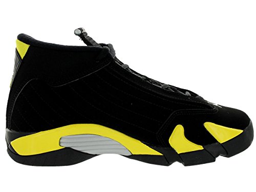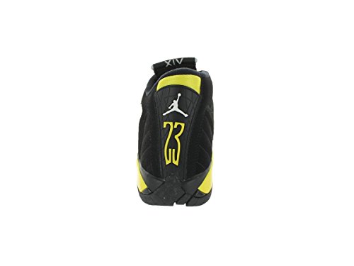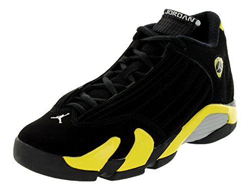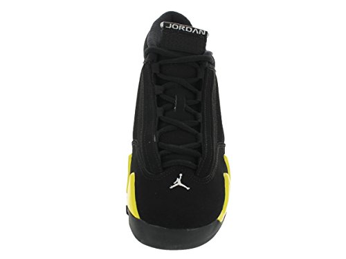 -. Binding : Apparel -. Brand : Jordan -. Color : Black/White/Vibrant Yellow -. Department : boys -. Feature : EVA reinforcement / Stratigic wraps help lock the feet for a stable and secure fit / EVA sockliner supports the feet -. Label : -. Manufacturer : -. Model : 487524-070 -. ProductGroup : Shoes -. ProductTypeName : SHOES -. Publisher : -. Studio : -. Title : Jordan Kids Air Jordan 14 Retro BG Basketball Shoe