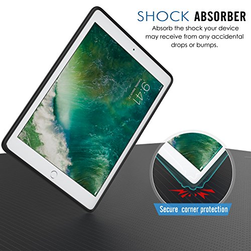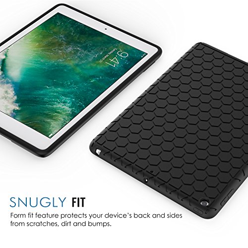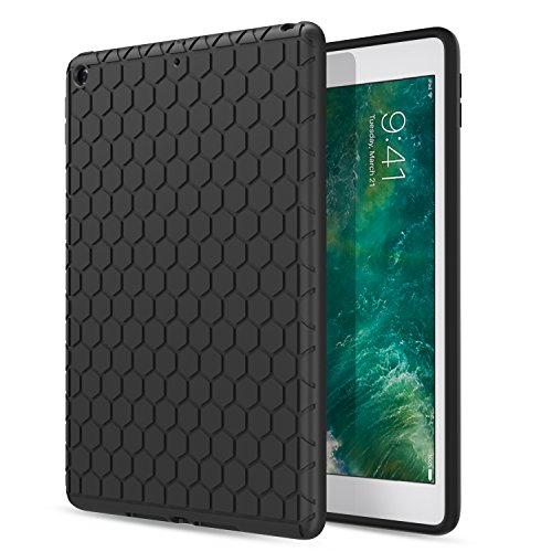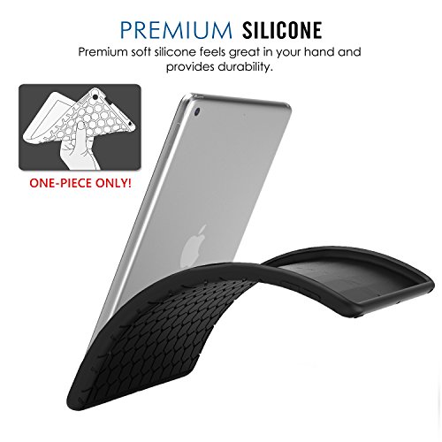 MoKo Case for New iPad 2017 9.7 Inch - [Honey Comb Series] Light Weight Shock Proof Soft Silicone Back Cover [Kids Friendly] for Apple New iPad 9.7 Inch 2017 Release Tablet, BLACK