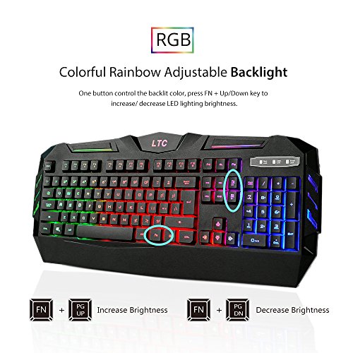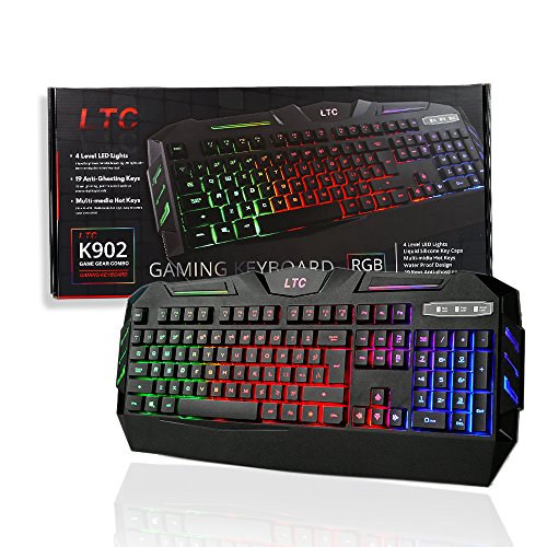 -. Feature : ✔ Professional Gaming Equipment. 104 keys, 19 keys anti-ghosting, detachable keycaps, reinforced space key. Specially designed keys for enhanced durability and tactile feedback, 60 million keystroke life span, lets you enjoy high-grade games with fast response. / ✔ Colorful Rainbow Adjustable Backlight. With the cool LED backlighting design, you have more fun no matter working or playing games. It's not only a gaming keyboard, it can be your best partner in working too. Also, it will be a good gift for your family and friends. / ✔ 12 Easy-To-Reach Multimedia Keys. LTC-K902 provides 12 shortcut keys for gaming, email, sounds, music, calculator and other multimedia. Audio can be adjusted without interrupting the game or work. / ✔ Easy to use. USB-braided cable, plug and play without driver needed. ABS material, laser-etched, and waterproof designed for long time using. / ✔ Compatible with Windows 10, Win 8, Win 7, Win Vista, Windows XP and Mac OS. LeaningTech also provides 12 months warranty and 30 days no reason return. Customers' satisfaction is our goal.