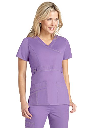 Adar Womens Pop-Stretch Junior Fit Taskwear Tab-Waist Crossover Scrub Top