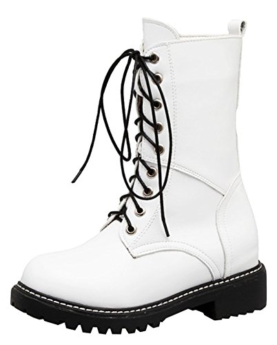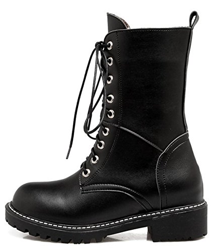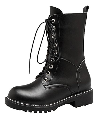 Binding : Apparel Product Description This pair of shoes is for women, girls, juniors and young ladies. You will look fashion and stylish when wearing them. The heels measures 1.9 inches. You will look slimmer and slender in their high block low heel. So you will not feel too tired when walking with them. This pair of shoes features solid waterproof upper and lace up closure. You will look sweet in their round toe. The faux fur lined design will warm you all the winter. The sole is made of good rubber. You will feel comfortable in their soft bottom. They are of high quality and durable. 0