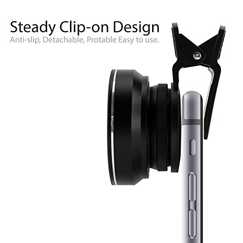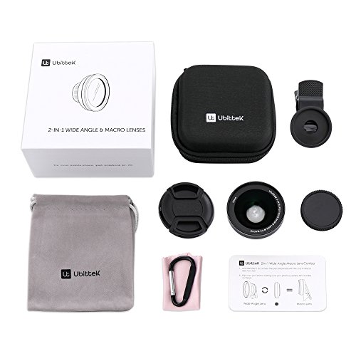 Studio : Ubittek Publisher : Ubittek Binding : Wireless Phone Accessory Product Description Ubittek iPhone Camera lens can be used with all major smart phones and tablets with a single lens rear camera.mini lenses add-on for your iPhone X/8/8 Plus7/7 Plus/6/ 6s/ 6 Plus, Samsung Most Smartphones and tablets, enhance your camera capability and create amazing photos. Super Wide Angle Lens is Ideal for taking pictures of large ranges, capturing travel scenery, wide landscapes and wide format selfies; Macro lens gets you 15× closer to objects for exceedingly detailed close-ups. it will show you another world of cell phone photography! Everyone can be a photographer of your life! Super Wide Angle lens: ● Angle: 140° ● Magnification: 0.5x Macro lens ● Magnification: 15× Notes: ▲ Unscrew the Wide Angle Lens to convert the part attached with the clip to Macro Lens function ▲ Clip onto your phone making sure your phone's camera lens is visibly centered ▲ Clean the lens before using them and put on the covers when finish photoing to get a clearer picture. product details ● 1× Wide Angle Lens ● 1× Macro Lens ● 1× Universal 37mm Thread Clip ● 2× Lens Cover ● 1× Carrying Box ● 1× Carrying Pouch ● 1× Lens Cleaner ● 1× Hook 0