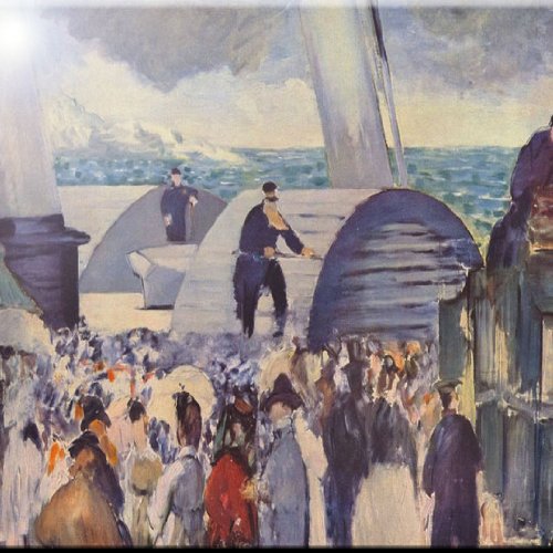 Rikki Knight RK-12intilec-3498 12" X 12" Edouard Manet Art Embarkation of The Folkestone Design Ceramic Art Tile