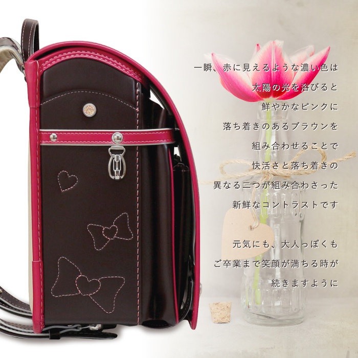 원본상품명: 送料無料☆2018年度モデル☆リボン&ハ?トステッチ☆持ち手付クラリ?ノFランドセル☆女の子3色展開 A4フラットファイル?? 日本製