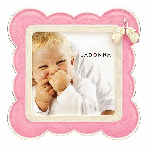 靴のチャームが可愛いフレーム。「早く一緒に歩こうね」。 製造国:中国 素材・材質:亜鉛合金、シルバーメッキ、エポキシ、チェコ製クリスタル 商品サイズ:145×145mm 仕様:内寸:100×100mm窓寸:90×90mm写真サイズ:ミニサイズ縦置き専用裏面/カラー:グレー、素材:ベルベット ※サプライヤー直送品 ご注文後3~4営業日後の出荷となります【商品名】ラドンナ ベビーフォトフレーム 靴のチャーム付 145×145 ピンク・MB33-S2-PK