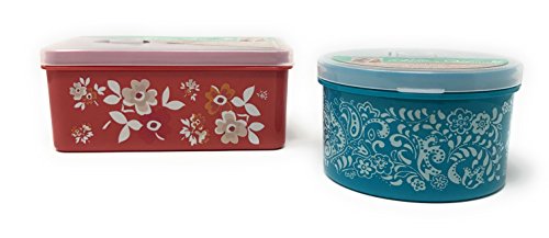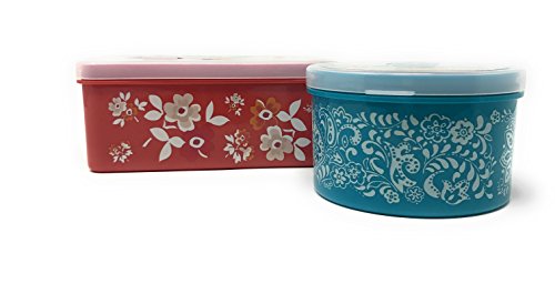 The Pioneer Woman Food Storage with Vent Container Set, Traveling Vines Round and Floral Meadows Rectangular, Set of 2